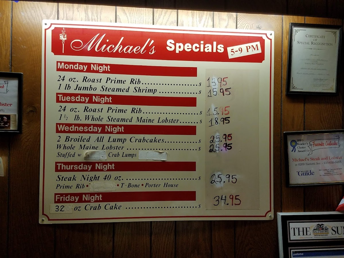 Michael’s Steak & Lobster House offers a straightforward, classic menu that reflects its long-standing presence in Baltimore. The selections focus on hearty steak and seafood dishes, aiming for satisfying, well-prepared meals rather than trendy or elaborate presentations. Whether you’re stopping in for a relaxed dinner or a casual celebration, the menu suits a comforting, familiar atmosphere.