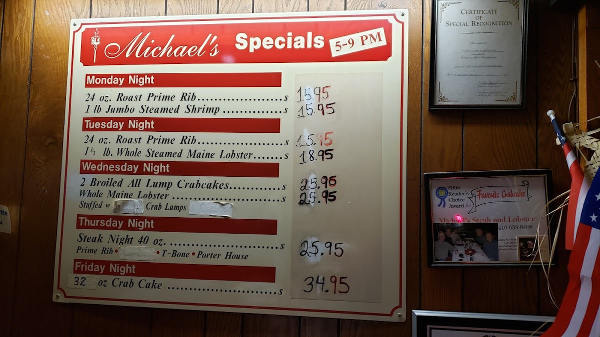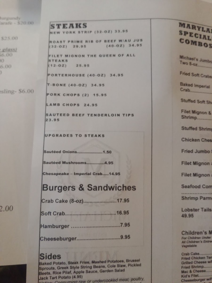 Michael's Steak & Lobster House Menu